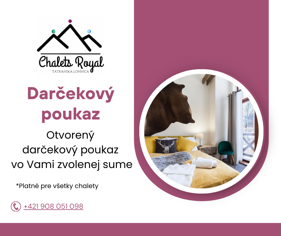 Pobyt je potrebné objednať telefonicky na t.č.: +421 908 051 098 alebo emailom: rezervacie@chaletsroyal.sk