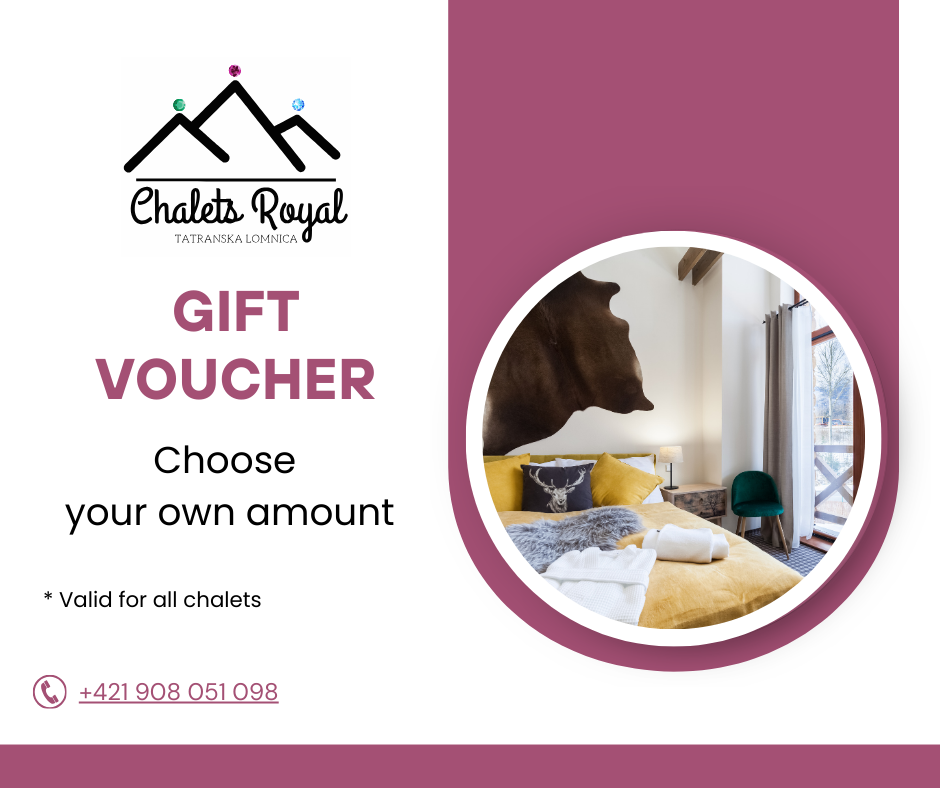 Contact us by phone at +421 908 051 098 or by email at rezervacie@chaletsroyal.sk, and we will book your stay.
